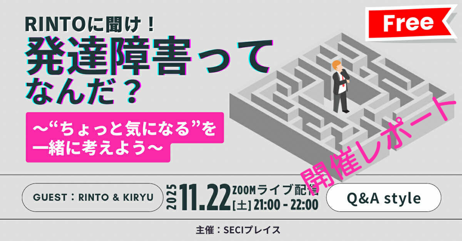 ~“ちょっと気になる”を一緒に考えよう~ イベントレポート 開催:オンラインLIVE配信日時:2025年11月22日(土) 21:00~22:00ゲスト:RINTO&kiryu主催:NPO法人SECIプレイス 「違い」 […] - 代表理事のブログ